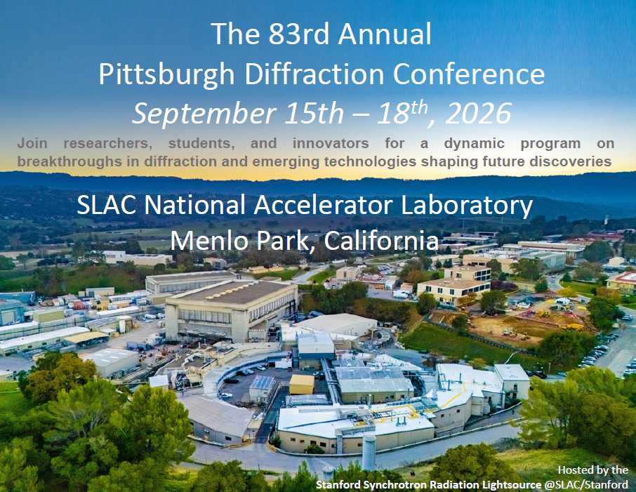 Join us for the 83rd Pittsburgh Diffraction Conference to be held on September 15–18, 2026 at SLAC National Accelerator Laboratory (Menlo Park, CA) located ~0.25 miles from Stanford University’s main campus